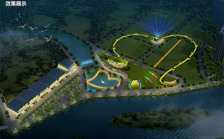 同心现代农业生态园的水体与场地条件十分优越,是灯光秀工程可以重点依托的资源。在设计中,灯光秀项目的设置将重点围绕这两大要素展开,兼顾其发散出来的各方面要求,突出项目的多样性、主题性和宜地性,使得灯光秀的建设既有核心又丰富多彩。